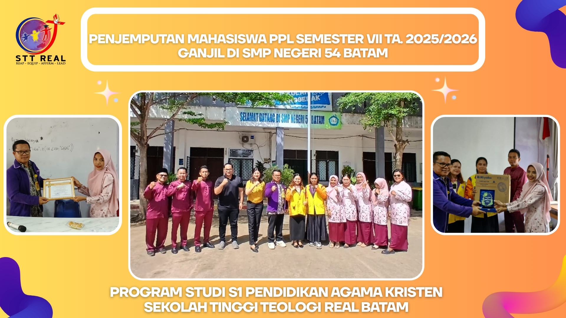 PENJEMPUTAN MAHASISWA PPL SEMESTER VII TA. 2025/2026 Ganjil di SMP NEGERI 54 BATAM Program Studi S1 Pendidikan Agama Kristen Sekolah Tinggi Teologi REAL Batam melaksanakan kegiatan penjemputan mahasiswa Praktik Pengalaman Lapangan (PPL) Semester VII Tahun Akademik 2025/2026 Ganjil di SMP …