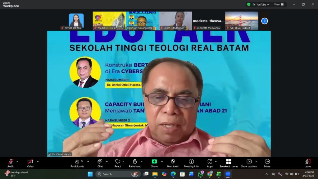Batam, 23 Februari 2026, Sekolah Tinggi Teologi REAL Batam kembali menunjukkan komitmennya dalam membangun suasana akademik yang dinamis dan relevan melalui kegiatan Suasana Akademik “EDUTALK” yang diselenggarakan pada Senin, 23 Februari 2026, pukul 15:00–16:00 WIB.