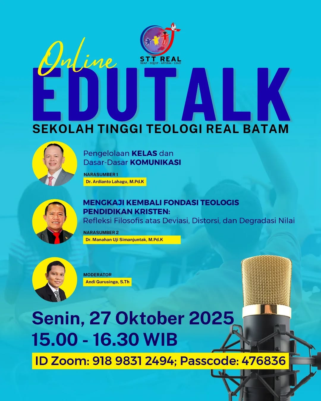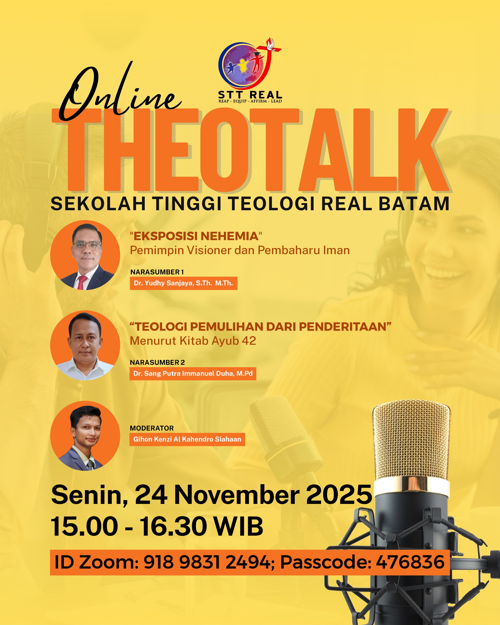 Mari diperlengkapi melalui pemaparan Firman Tuhan bersama para narasumber dari STT REAL Batam.