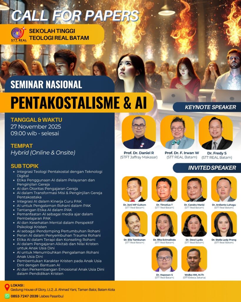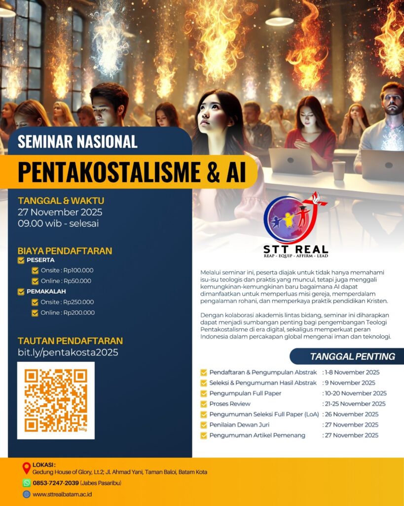 Mari bergabung dalam dialog akademik lintas bidang yang menggali keterkaitan antara teologi Pentakostal dan kecerdasan buatan (AI), menyoroti peluang, tantangan, dan transformasi rohani di era digital.